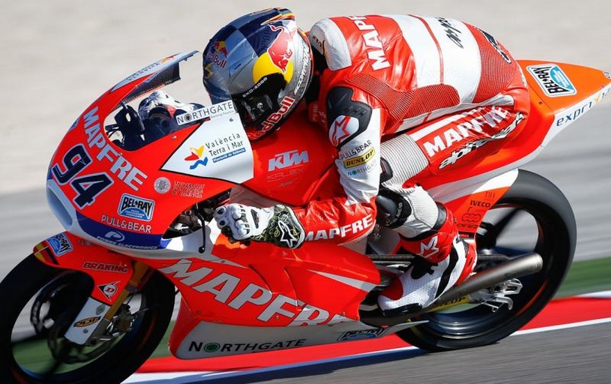 La Moto3 è la categoria in cui quest'anno il dominio spagnolo è stato più totale, con ben quattro piloti (Vinales, Alex Marquez, Rins e Salom) al vertice, ma stavolta a beffarli c'è stato un tedesco, Jonas Folger, Il pilota del team (manco a dirlo, spagnolo) Aspar ha fermato il cronometro sul tempo di1.42.707, precedendo Rins e Vinales. Altra "non-Spagna" a seguire, con un rinato Khairuddin, uno straordinario Antonelli quinto a 1 secondo, Oliveira e Granado. A seguire Alex Marquez davanti al leader del mondiale Salom , non al 100% a causa della cadua di ieri. Gli altri italiani: Fenati 15°, Tonucci 20°, Ferrari 25°, Locatelli 26°, Baldassarri 27°, Marini 29°, Bagnaia 31°.