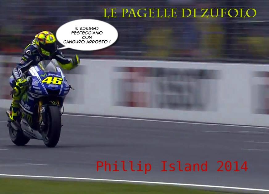 Valentino Rossi 9: Al posto giusto al momento giusto. In qualifica il solito chihuaua impaurito, ma poi in gara è un vero mastino. Lui e Lorenzo se le danno di santa ragione finché la gomma di quest’ultimo si scioglie come un biscotto bagnato. Marc anticipa il regalo di natale per l’italiano, stendendosi alla curva 10 e consegnandogli così la vittoria. Santa Claus is coming to Australia. E Vale è stato un bambino bravo.